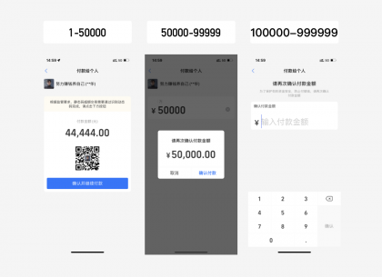金額超出限制后,通過(guò)組件toast提示“付款金額超限”,第一提示框組件很好的限制鍵盤的數(shù)字輸入,避免用戶無(wú)效輸入,第二toast提示框的觸發(fā)時(shí)機(jī)設(shè)計(jì),這里的方案是當(dāng)輸入金額超百萬(wàn),按數(shù)字鍵盤的時(shí)候就會(huì)給予提示,而不是等用戶輸入完之后,再去按確認(rèn)鍵的時(shí)候,彈出來(lái)提示金額超限。