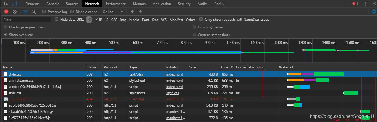 animate.css, mini-ui.css的請(qǐng)求耗時(shí)最長(zhǎng)。