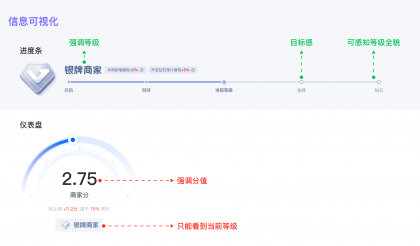 我們要強(qiáng)化商家的等級(jí)感知,通過視覺和交互引導(dǎo)等方式,強(qiáng)化商家對(duì)等級(jí)感知的重要性和影響。