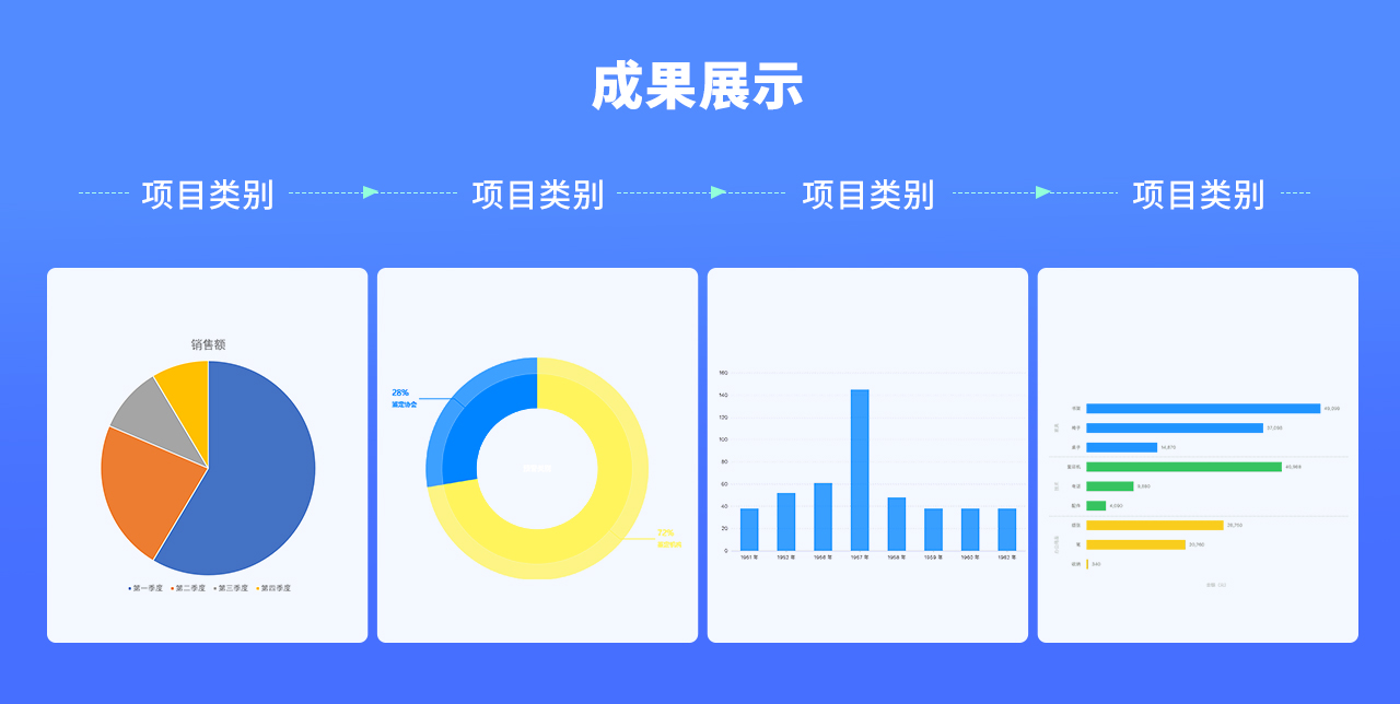 特別是針對需要要數(shù)據(jù)展示的同學(xué),請記得數(shù)據(jù)一定要突出,不要一直用字打出來,我們的評委沒有那么多精力去細看分析,這個時候需要你主動展示,把數(shù)據(jù)單獨拿出來,分析并整理好,采用圖形化的方式去展示,比如對比的去展示,占比可以使用柱狀圖,餅圖,折線圖等,這樣的展示更直觀,更清晰明了,直接把結(jié)果灌輸給評委,把人當(dāng)成傻瓜,結(jié)論先行這點很重要。