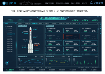 也分享一組我們給某單位設(shè)計(jì)的火箭發(fā)射界面設(shè)計(jì)(已脫敏),這個(gè)發(fā)射監(jiān)控系統(tǒng)有五種皮膚主題,分別應(yīng)用不同的場(chǎng)景,簡約版、科技藍(lán)、軍隊(duì)?wèi)?yīng)用、慶典重大時(shí)刻...