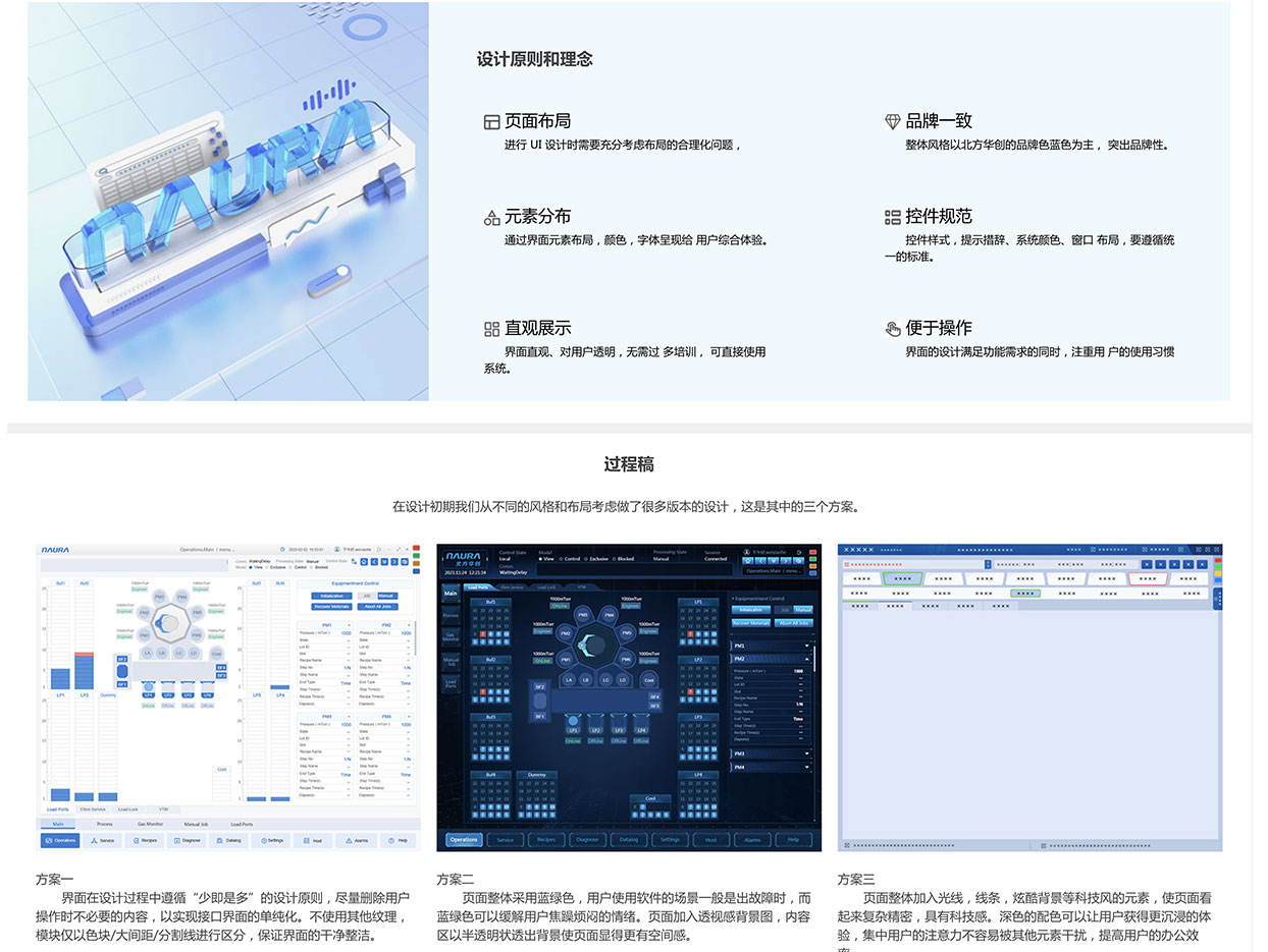 品牌一致:整體風(fēng)格以北方華創(chuàng)的品牌色藍色為主, 突出品牌性。