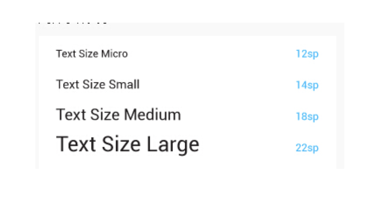 3. 字體:官方建議使用 12sp、14sp、18sp、22sp 等,盡量避免奇數(shù)大小。