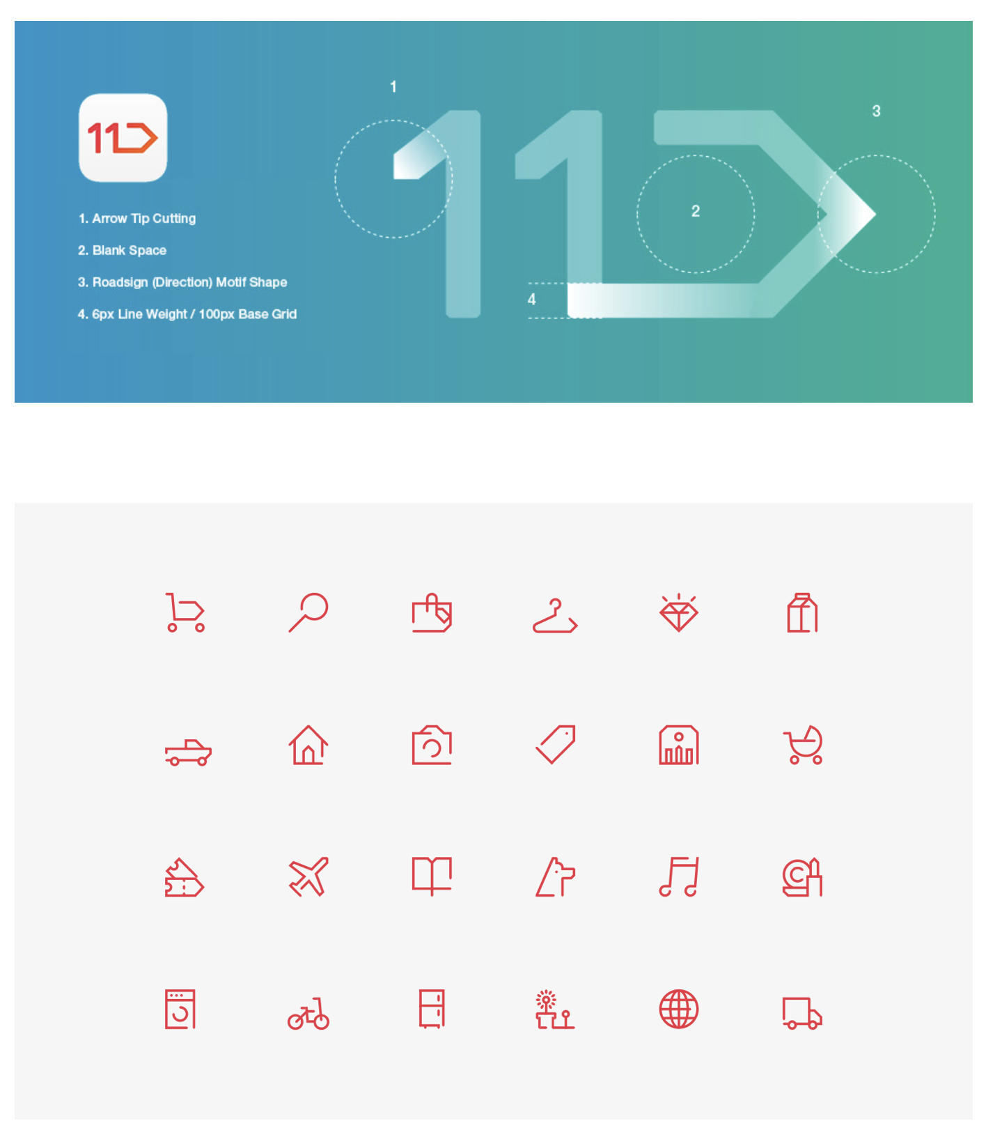 - 案例 1:韓國電商 “11 街” 的功能圖標延續(xù)了 logo 的圖形特點,區(qū)別于競品,增強用戶認知。