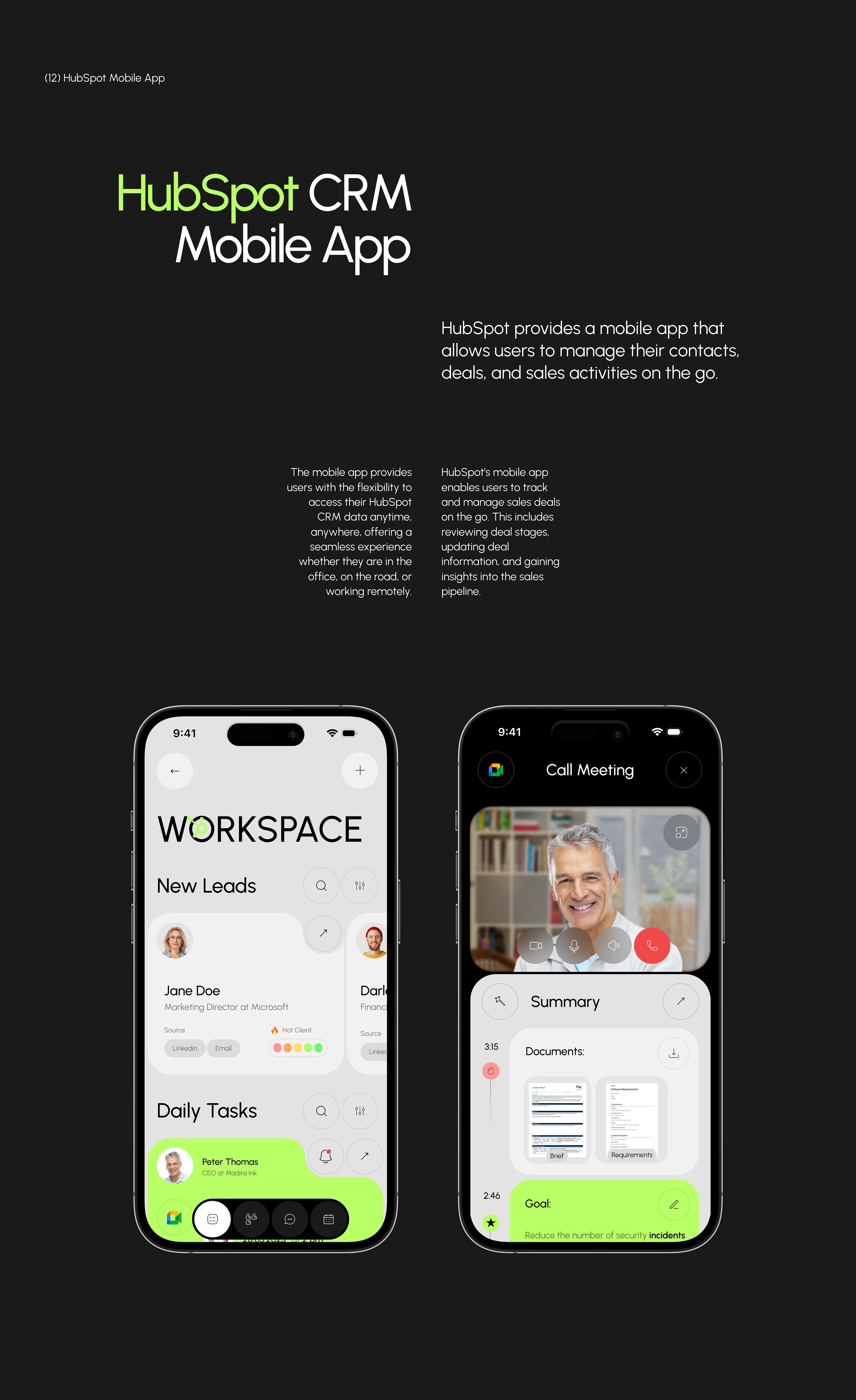 界面布局與組件:包含工作區(qū)(WORKSPACE)整體界面呈現(xiàn),以及任務(wù)卡片(如 “Your Day's Tasks” 下的任務(wù))、人物信息卡片(如 “Jane Doe”“Wade Warren” 相關(guān)卡片)、文檔展示模塊(Documents)、目標(biāo)說明模塊(Goal)等各類界面組件,可用于構(gòu)建類似的客戶關(guān)系管理界面布局。