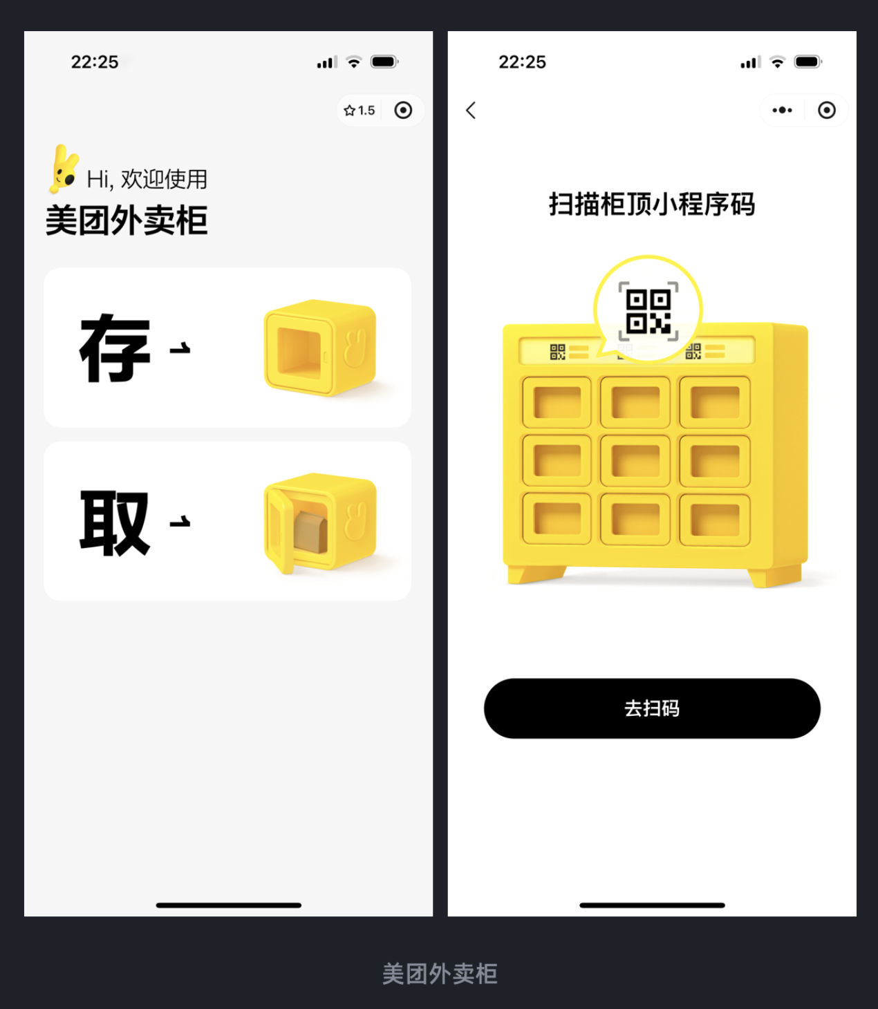 現(xiàn)在很多產(chǎn)品總想著 “多放功能才顯價(jià)值”,結(jié)果界面雜亂,用戶找不到核心操作。但美團(tuán)外賣柜小程序卻反其道而行之 —— 打開界面后,只有 “存” 和 “取” 兩個(gè)核心按鈕,搭配 “掃描柜頂小程序碼” 的簡單指引,沒有任何廣告、推薦等多余元素。