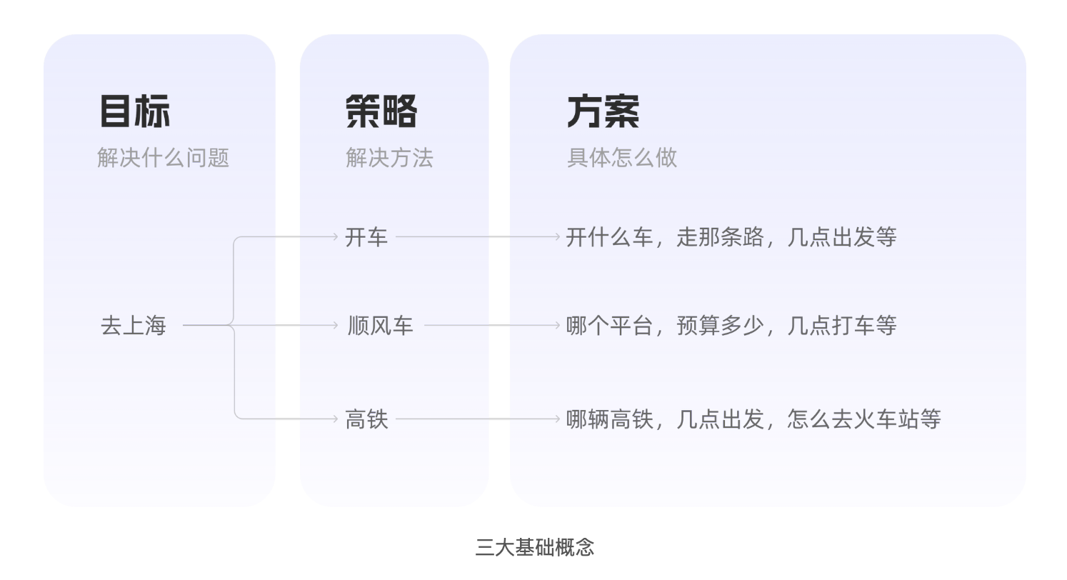 生活中的例子更易理解:業(yè)務目標是 “半年內(nèi)減重 10 斤”,設計目標(對應個人行動目標)是 “每月運動頻次提升 4 次、飲食熱量控制在 1500 大卡內(nèi)”,策略是 “選擇家門口的健身房降低通勤成本”“用飲食 APP 記錄熱量”,方案是 “每周一 / 三 / 五晚 7 點健身”“早餐搭配雞蛋 + 燕麥”。