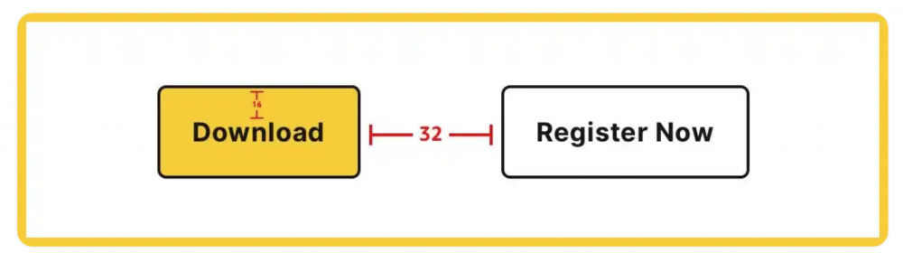 在上圖的案例中,設計師盡可能使用 8 的倍數(shù)來定義所有的設計參數(shù),包括按鈕的長寬尺寸、按鈕的內(nèi)邊距(Download距離按鈕頂部的內(nèi)邊距)、按鈕和按鈕的間距等。8 點網(wǎng)格可以進一步降低設計師的決策難度,提升設計效率。