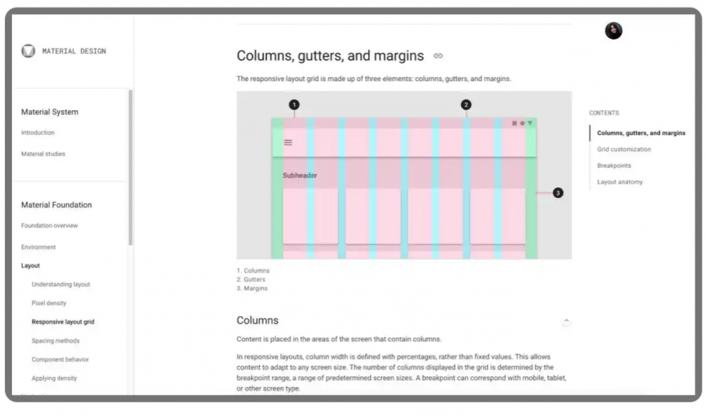Material Design的柵格布局是響應式的,能夠根據(jù)設備的屏幕大小和方向自動調(diào)整。設計師可以利用五個斷點(xs, sm, md, lg, xl)來定義在不同屏幕尺寸下的列數(shù)和布局方式,從而實現(xiàn)靈活的設計。
