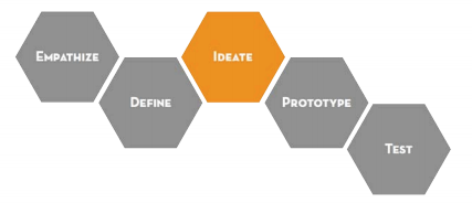 第三步:Ideate(“設(shè)想”,其實(shí)就是做頭腦風(fēng)暴,盡可能多的去想解決方案,想自己項(xiàng)目可能涉及到的人,然后再簡(jiǎn)化為一個(gè)具體的方法)。