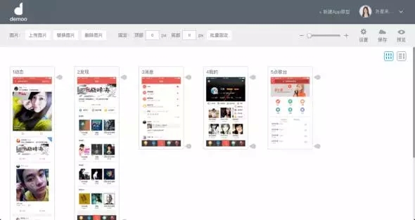 Demoo是基于web設(shè)計搭建的一款在瀏覽器內(nèi)進行可視化操作的工具。通過上傳平面稿件,用手勢或觸點熱區(qū)的方式把界面關(guān)系連接起來,加入連接轉(zhuǎn)場,輸出一份仿真APP的、可體驗操作的設(shè)計方案,滿足在電腦、會議投影現(xiàn)場及手機上體驗操作。點擊這里可查看更詳細介紹:《為移動端方案設(shè)計演示而生的DEMOO》