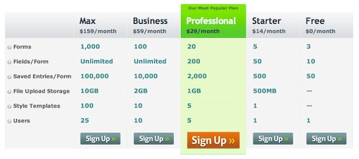 看一下Invoice Machine的例子,表格里除了最上面的三種功能,其他功能的四個條目項都一樣。該表格因此增加了沒有必要的15行。解決方法可以通過一個簡單的公告列表說明“我們的計劃都包括以下功能”,用戶能夠快速看到,他們無論選擇哪個計劃,都會具備這些功能。表格只需要縮短成3-4行,用來顯示不同的部分。我再次重申,表格應(yīng)該讓信息更易讀。如果您的表格不符合這一目標(biāo)則會適得其反。
