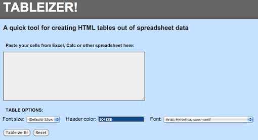 我偶然發(fā)現(xiàn)了一個小的web應(yīng)用程序:Tableizer ,它可以把Excel里的表格粘貼進(jìn)來轉(zhuǎn)換成HTML。利用這種方式你仍然需要自己寫一些樣式,但是會節(jié)省前期的表格構(gòu)建時間。
