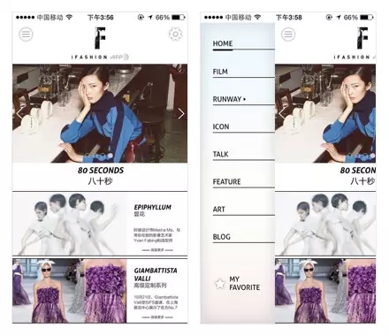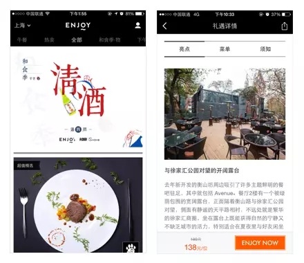 當然,如果不是內容為主的App,沒有太多的排版需求的話,不妨可以像iFashion,或者又是飯本出品的精選限量美食App—ENJOY—這樣,通過直接了當?shù)暮诰€分割,也是不失干脆利落。