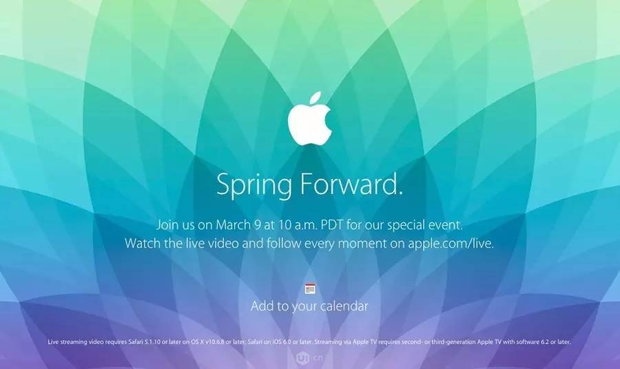 有些企業(yè)沒(méi)有特別設(shè)計(jì)輔助圖形用來(lái)傳播,而是直接取用LOGO或是LOGO的局部作為傳播元素,比如蘋果的發(fā)布會(huì)海報(bào)就經(jīng)常拿LOGO的局部做創(chuàng)意: