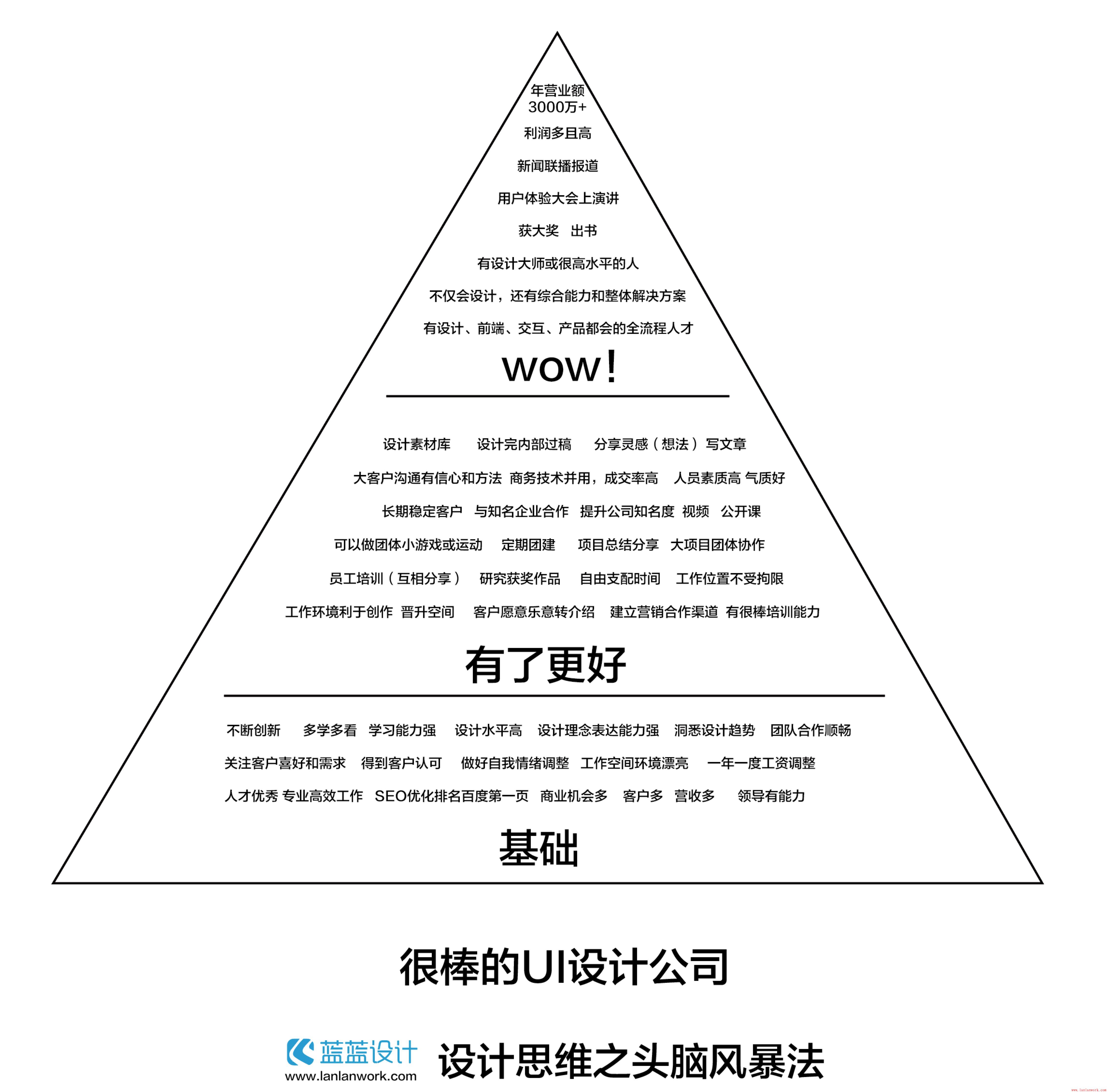 藍(lán)藍(lán)設(shè)計(jì)組織部分小組成員以“如何成為一家很牛的UI設(shè)計(jì)公司?”為主題進(jìn)行了一次頭腦風(fēng)暴活動(dòng)。我們將過(guò)程做了一下梳理。