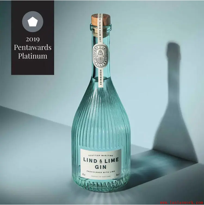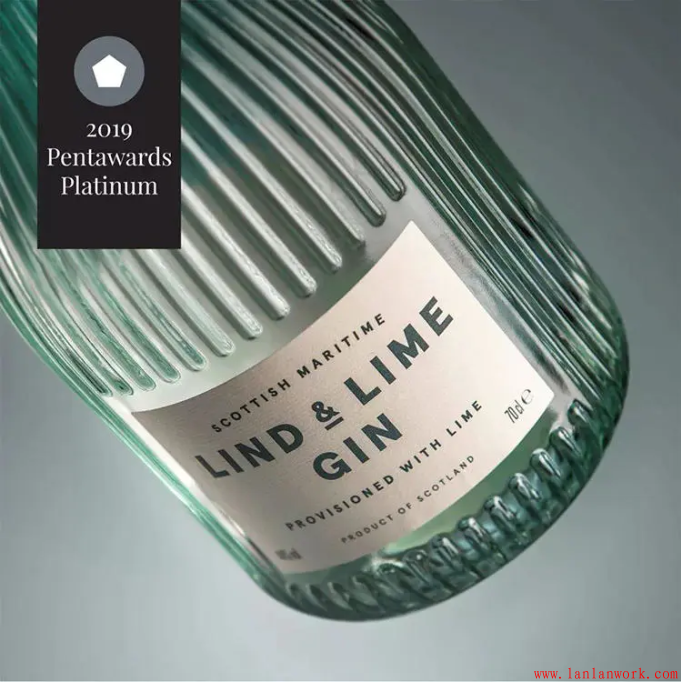 今年飲料類的「鉑金獎(jiǎng)」被來(lái)自英國(guó)愛(ài)丁堡的LIND & LIME GIN獲得。包裝設(shè)計(jì)由蘇格蘭的創(chuàng)意團(tuán)隊(duì) Contagious 操刀,酒瓶設(shè)計(jì)的靈感源于品牌商The Port of Leith Distillery所在的Leith 地區(qū)海岸上具有歷史意義的工業(yè)建筑以及老窯.