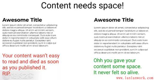 要給內(nèi)容足夠的呼吸空間。在頁面發(fā)布之前,請確保在不同的設(shè)備上測試留白,以確保可讀性。