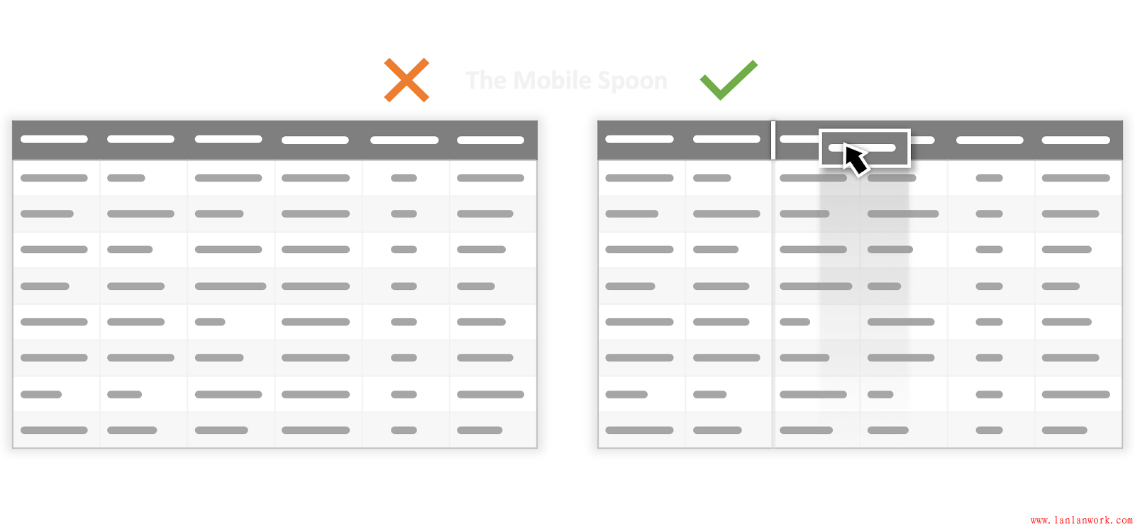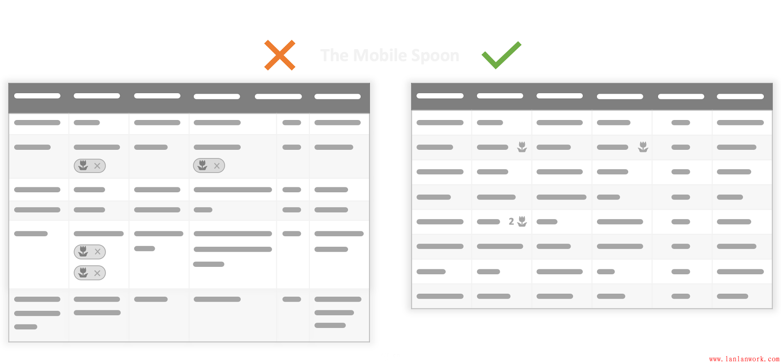 表格和網(wǎng)格是體現(xiàn)結(jié)構(gòu)化信息的,但是,當(dāng)表格的列寬、行高不同時(shí),就會(huì)變得混亂,信息也就會(huì)變得沒有體系。