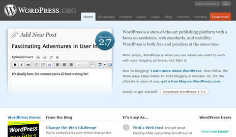 WordPress 為頁面中的鏈接 “Download(下載)” 使用了對比色。 這種紅色在冷灰色調(diào)的頁面中自己跳了出來。但這紅色在明度方面有所收斂,避免了影響頁面整體效果。