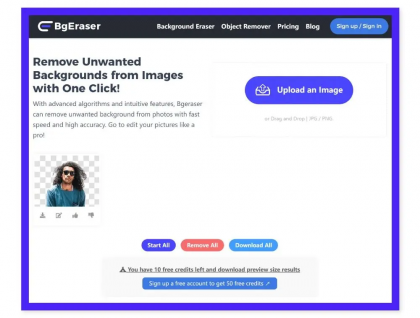 一個(gè)專(zhuān)注于 AI 摳圖網(wǎng)站,支持批量處理。上傳圖像后點(diǎn)擊 start 開(kāi)始處理圖像,摳圖時(shí)間在 30s 左右。新用戶(hù)有 10 次的免費(fèi)摳圖額度,注冊(cè)登錄后額度可以上升至 50 次。