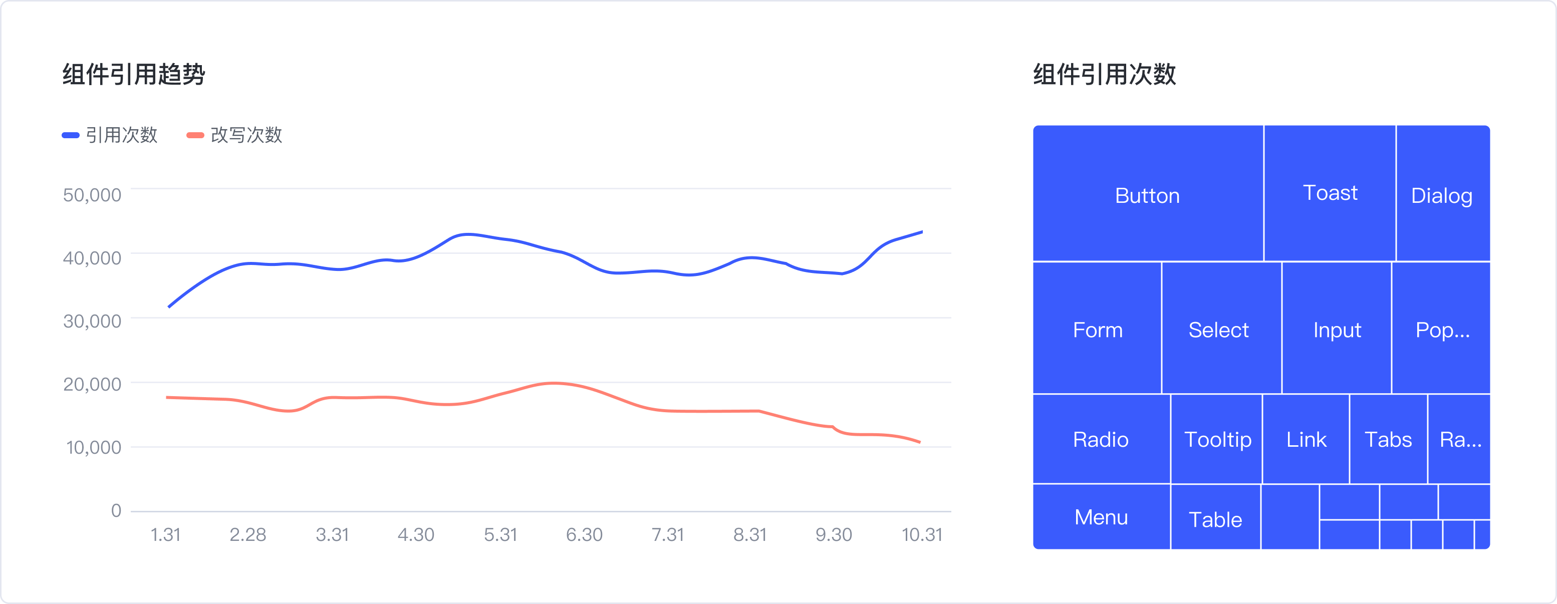 2.組件庫(kù)覆蓋率-各組件庫(kù)中被引用組件對(duì)于全集的占比。