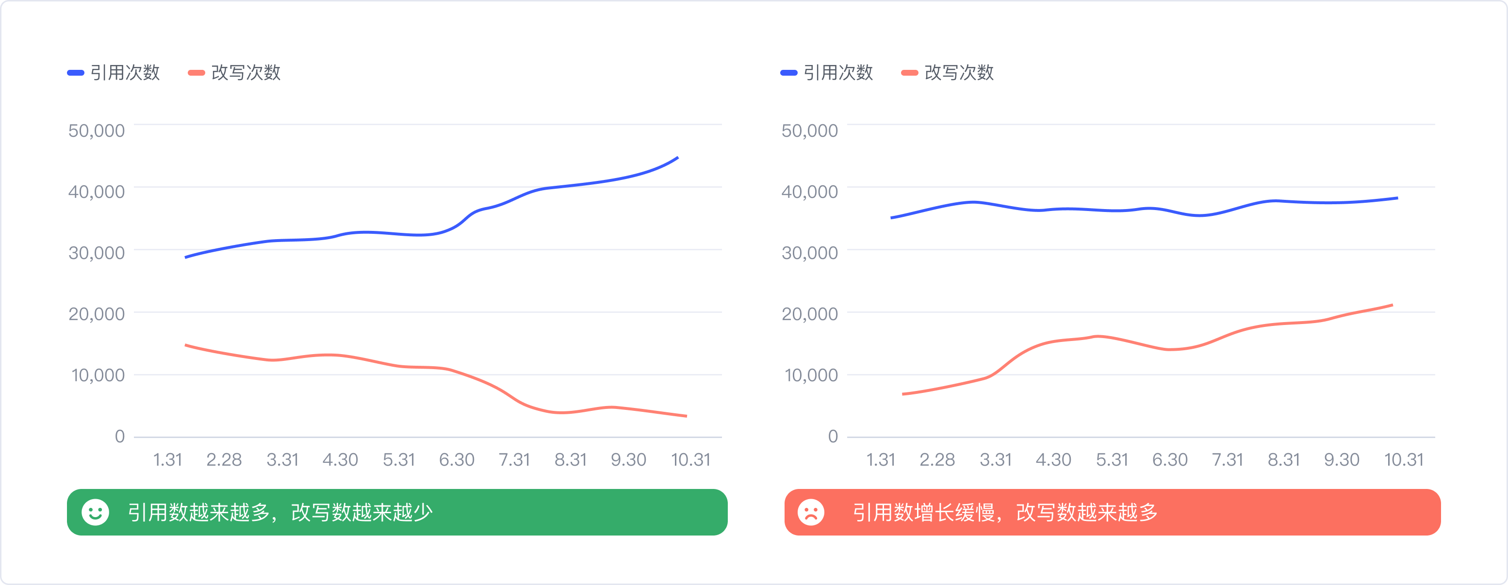 解:把所有組件的引用次數(shù)加和,得到總體數(shù)值,并結(jié)合時(shí)間維度,觀察組件庫(kù)整體改寫(xiě)數(shù)與引用數(shù)各自的變化趨勢(shì)。用線(xiàn)形圖來(lái)描述的話(huà),隨著時(shí)間推移,引用越多,改寫(xiě)越少,兩條線(xiàn)呈開(kāi)口狀,那就表示組件庫(kù)處于越來(lái)越健康的狀態(tài)。反之則需要警惕了。同時(shí)我們搭建了一套評(píng)分體系,基于引用/改寫(xiě)數(shù)值,通過(guò)歸一化和加權(quán)等一系列計(jì)算,by月/季度給組件庫(kù)易用性打分,也能精準(zhǔn)的知道組件庫(kù)易用性的表現(xiàn),如果分值是下降的,就要具體去定位哪些組件出了問(wèn)題,再根據(jù)上述的方法相應(yīng)地進(jìn)行升級(jí)。