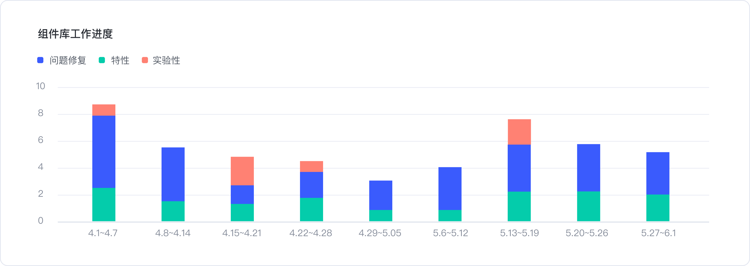 1.組件庫(kù)迭代進(jìn)度-迭代性質(zhì)可分為問(wèn)題修復(fù)、特性和實(shí)驗(yàn)性功能增優(yōu)。
